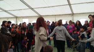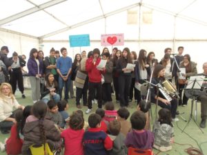 Περισσότεροι από 70 μαθητές Γυμνασίου-Λυκείου της Ελληνογαλλικής Σχολής Αγίου Ιωσήφ Πεύκης, της Ελληνογαλλικής Σχολής Αγίου Παύλου Πειραιά, του Λεοντείου Λυκείου Νέας Σμύρνης, του Λεοντείου Λυκείου Πατησίων, της Ελληνογαλλικής Σχολής Ουρσουλινών και της Ελληνογαλλικής Σχολής Jeanne D’ Arc Πειραιά τραγούδησαν, χόρεψαν, ζωγράφισαν κι έπαιξαν με αντίστοιχο αριθμό προσφυγόπουλων σε ένα πρόγραμμα μουσικής και ποικίλων διαδραστικών και εικαστικών παιχνιδιών για την αγάπη, την ειρήνη και την αλληλεγγύη.