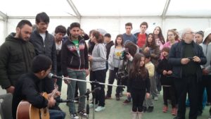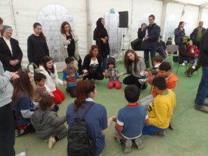 Μαθητές Ελληνογαλλικών Σχολείων τραγουδούν και παίζουν με προσφυγόπουλα στον Ελαιώνα
