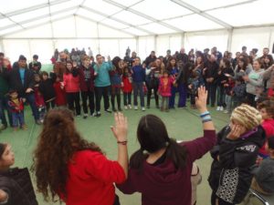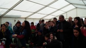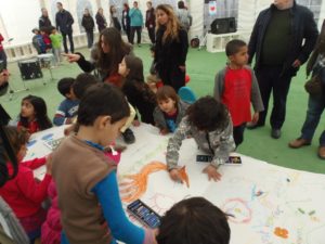 Για δυο ολόκληρες ώρες οι μικροί, αλλά και οι μεγάλοι φιλοξενούμενοι πρόσφυγες είχαν την ευκαιρία να ξεφύγουν για λίγο από την δύσκολη καθημερινότητα του ξεριζωμού από την πατρίδα τους, να ξεχάσουν την κατάσταση που βιώνουν ψάχνοντας για την ελπίδα ενός καλύτερου αύριο και να νοιώσουν το χαμόγελο και πάλι στα χείλη τους. Τόσο ζεστή ήταν η ατμόσφαιρα, ώστε εκτός προγράμματος κάποιοι πρόσφυγες τραγούδησαν στα αραβικά και τα φαρσί, προσθέτοντας ξεχωριστό τόνο στην εκδήλωση, η οποία ολοκληρώθηκε με την ανθρώπινη αλυσίδα που σχημάτισαν όλοι μαζί πιασμένοι χέρι-χέρι, τραγουδώντας στα ελληνικά «Τα παιδιά ζωγραφίζουν» και «Αν όλα τα παιδιά της γης».