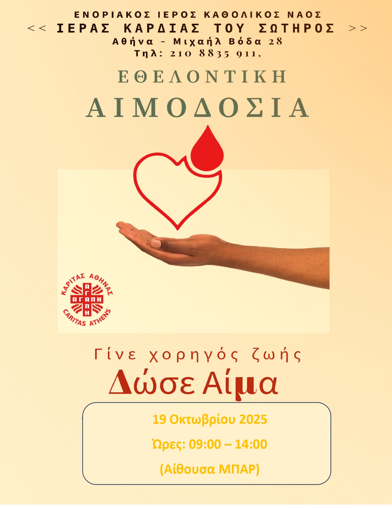 • Εθελοντική Αιμοδοσία στην Ιερά Καρδία του - Κυριακή 19 Οκτωβρίου 2025