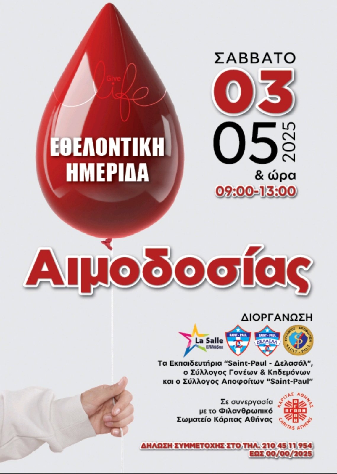 • Εθελοντική Αιμοδοσία στα Εκπαιδευτήρια Saint Paul-ΔΕΛΑΣΑΛ
